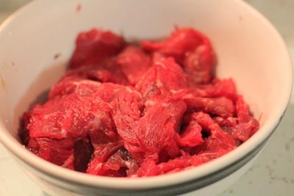 - Thịt bò thái lát mỏng, ướp vào nửa thìa nhỏ muối, một thìa nhỏ dầu hào, một ít hạt tiêu, trộn đều, ướp qua đêm hoặc ướp khoảng 15 phút.