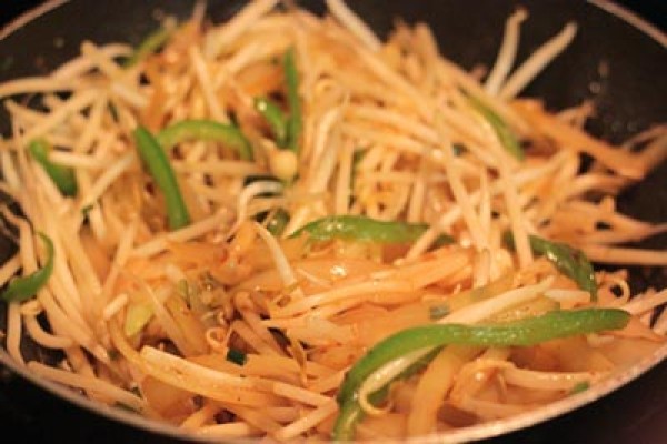 - Cho giá vào xào cùng, tùy theo bạn thích ăn giá chín tái hay chín mềm mà điều chỉnh thời gian cho phù hợp.