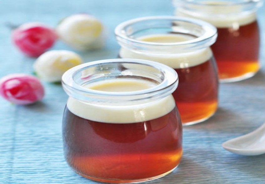 Cho hỗn hợp rau câu cà phê vào khuôn. Để nguội và cho vào tủ lạnh chờ rau câu đông đặc lại. Khi rau câu đã đông lạnh thì cho thêm 1 lớp sữa đặc có đường lên trên.