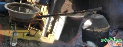 Hơi nước trong nồi rượu được bốc lên bộ phận làm lạnh bằng chậu sành